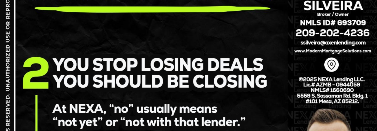 Hi, my name is Steve Silveira. I’m a Loan Officer with NEXA Lending LLC., offering personalized mortgage solutions, fast customized quotes, great rates and service with integrity.