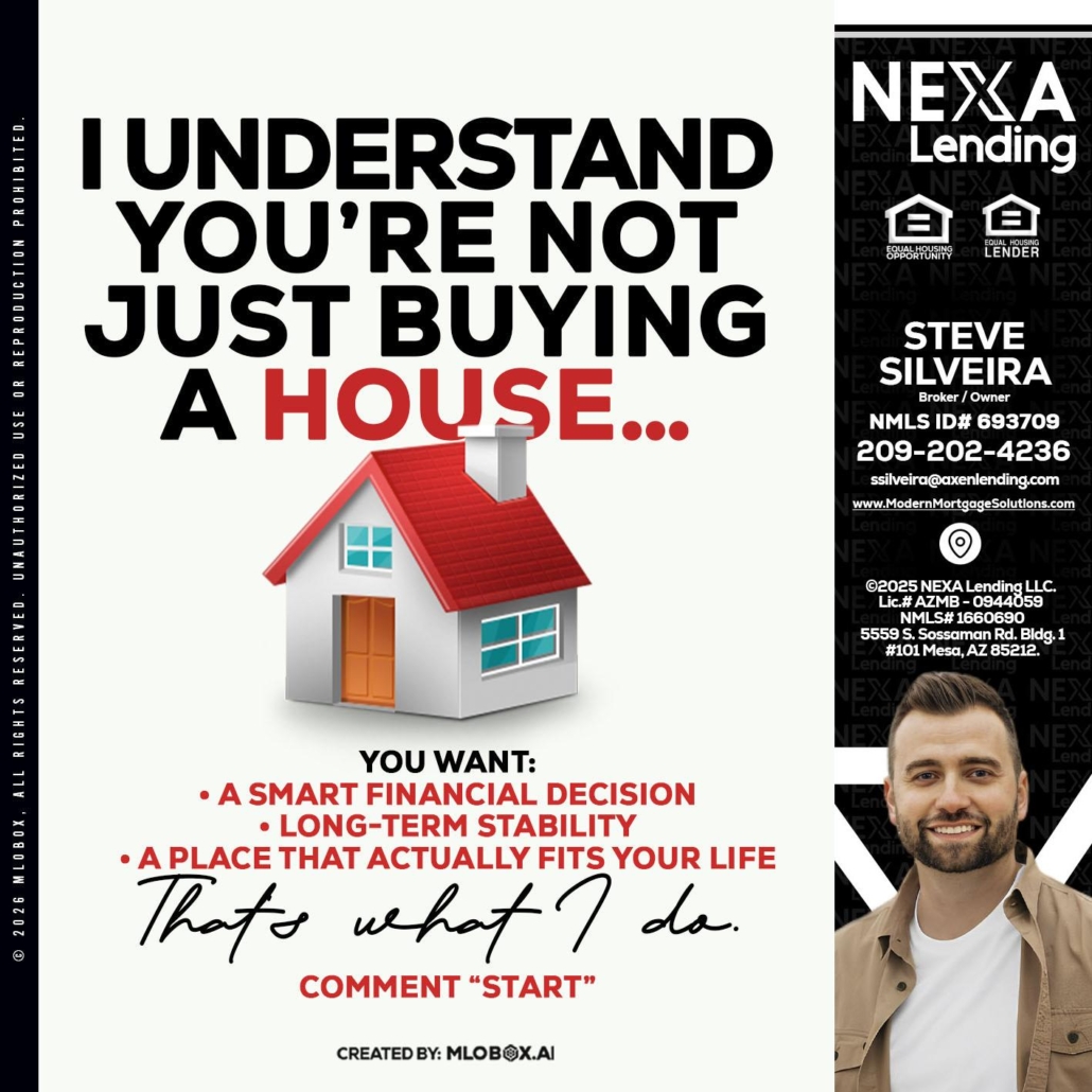 I UNDERSTAND - Steve Silveira -Loan OfficerHi, my name is Steve Silveira. I’m a Loan Officer with NEXA Lending LLC., offering personalized mortgage solutions, fast customized quotes, great rates and service with integrity.