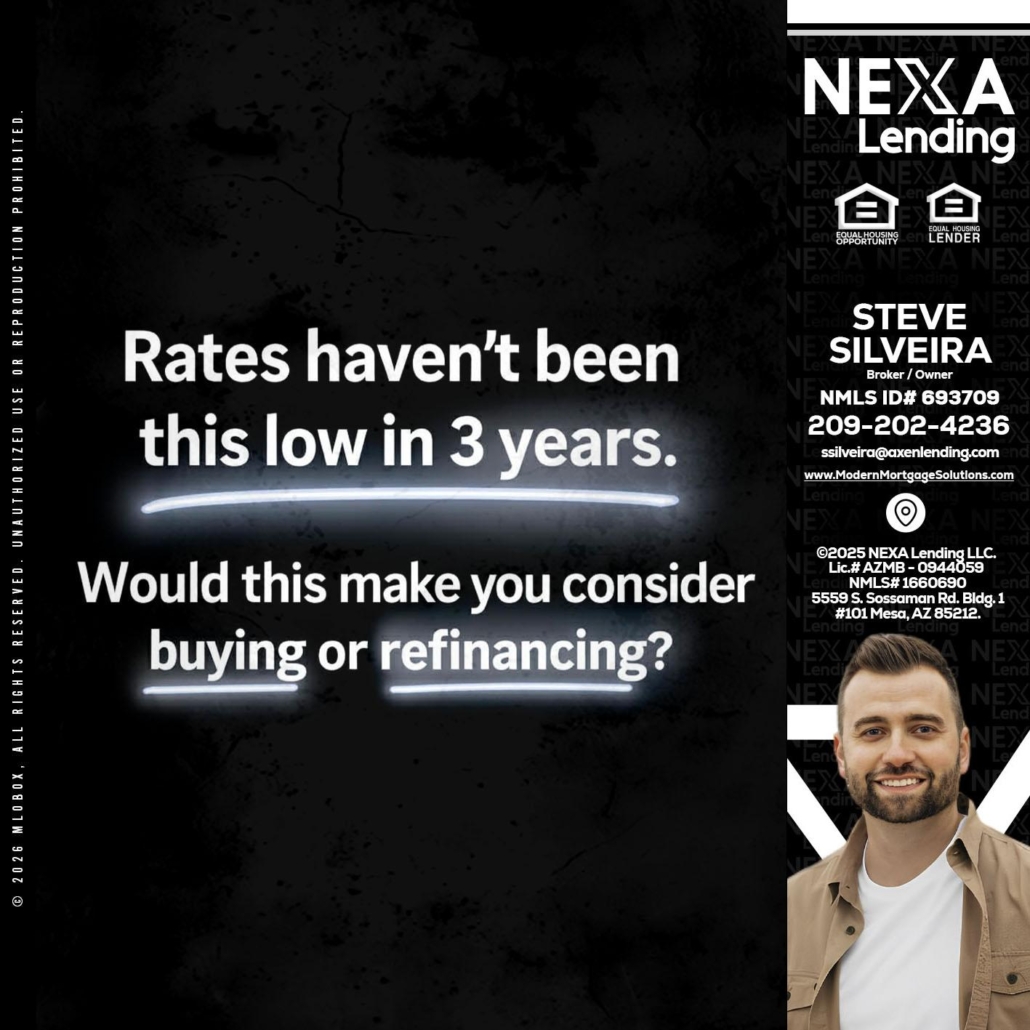 RATES HAVEN'T - Steve Silveira -Loan OfficerHi, my name is Steve Silveira. I’m a Loan Officer with NEXA Lending LLC., offering personalized mortgage solutions, fast customized quotes, great rates and service with integrity.